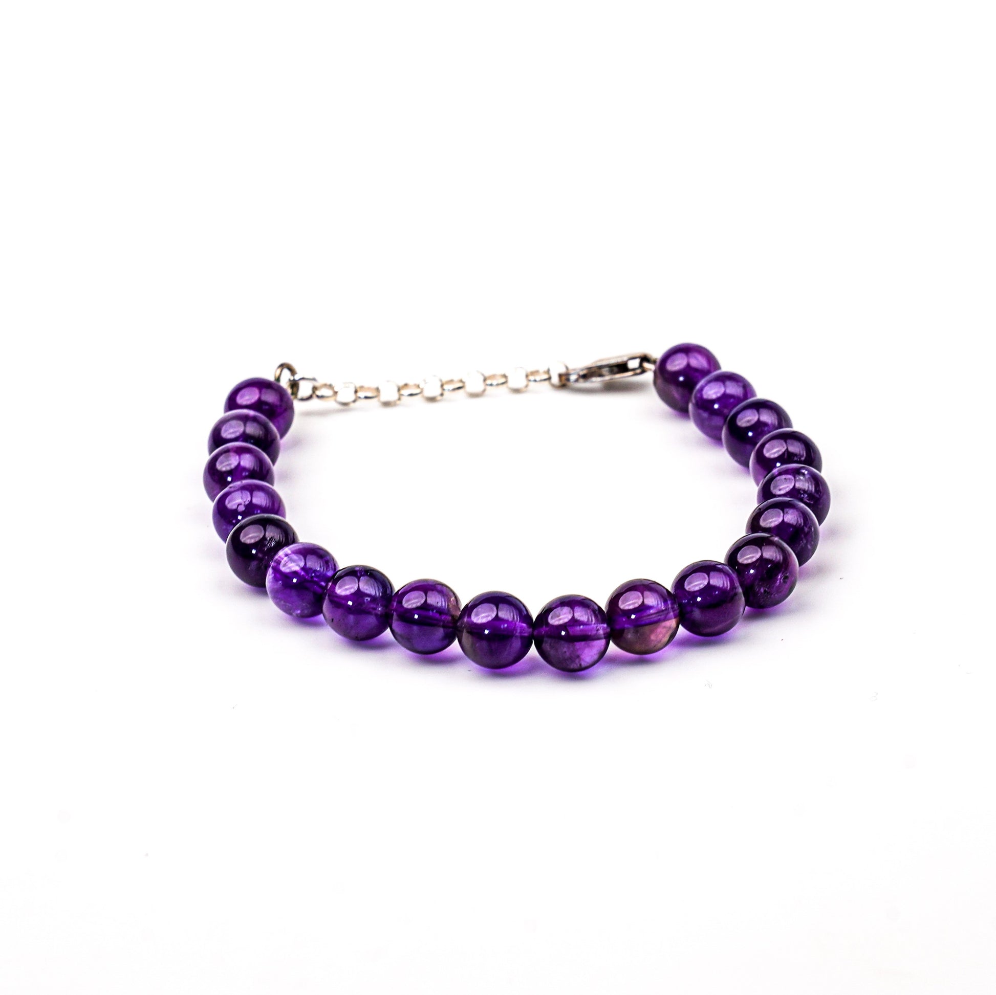 Bracelet D’améthyste 8 mm Avec Un Longueur De 20 Cm Fermoir En Argent 925 .
