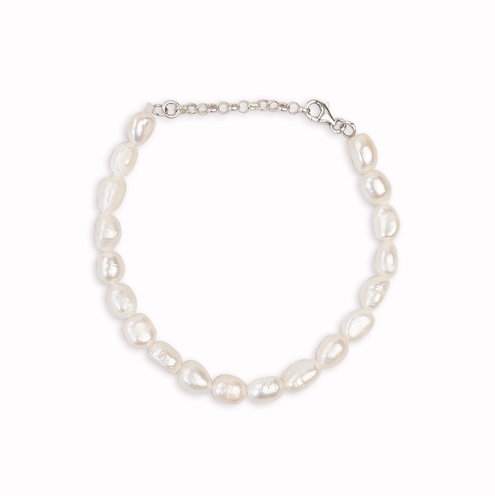 Bracelet De Perle Naturel Et Argent 925