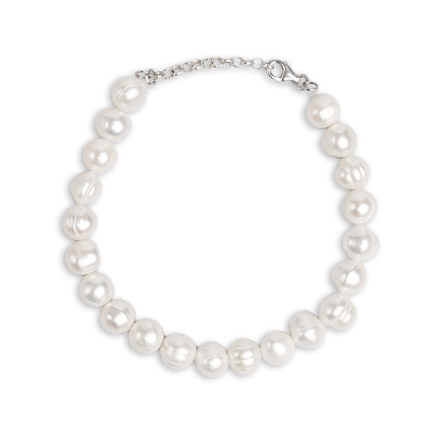 Bracelet De Perle De Culture 9-10 mm Avec Longeur De 20 Cm Et Fermoire En Argent 925 .