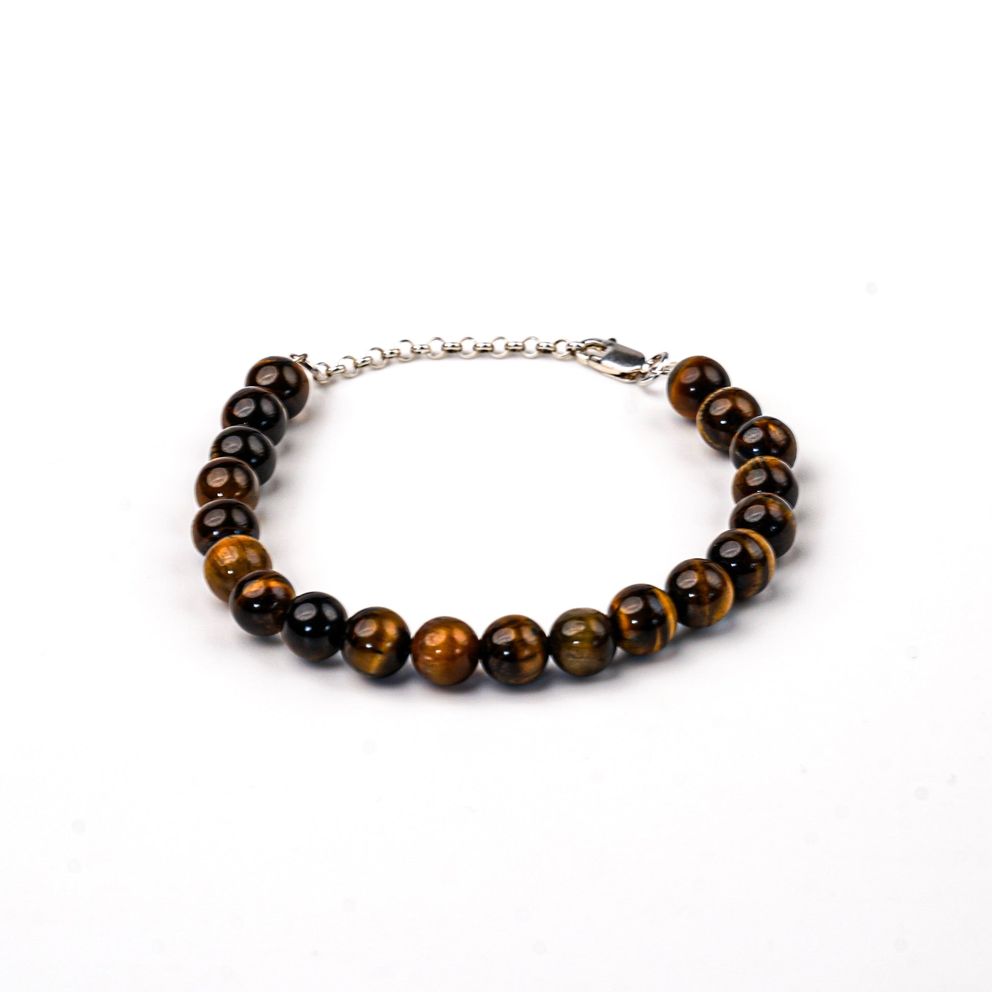 Bracelet Oeil De Tigre 8 mm , Avec Longueur De 20 Cm Et Fermoir En Argent 925 .