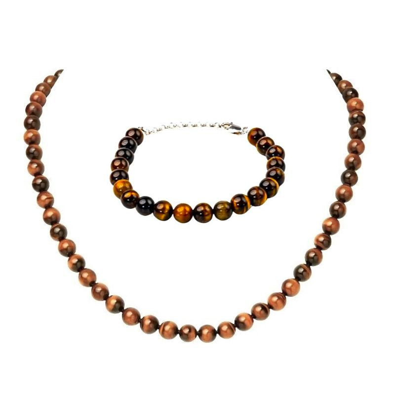 Ensemble contient un Collier Et Bracelet D’Oeil De Tigre 8 mm , Longueur Du Collier 45 Cm Et 20 Cm Pour Bracelet, Fermoir En Argent 925 .