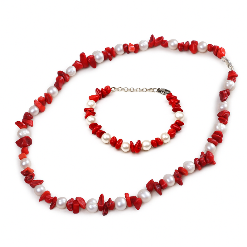 Ensemble De Corail Et Perle Naturel Et Argent 925