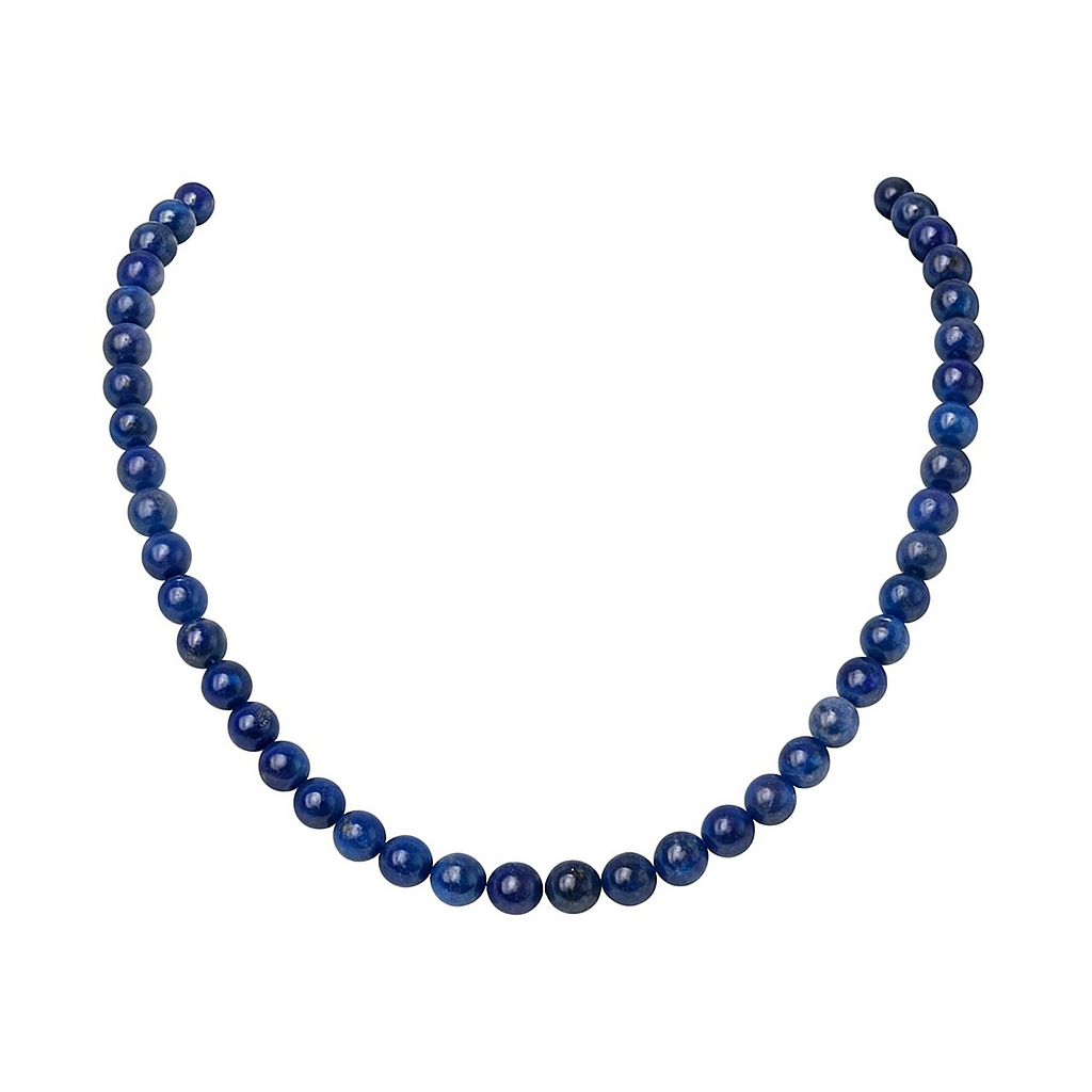 Collier de Lapis Lazuli Naturel 8 mm , Longueur Du Collier 45 Cm , Fermoir En Argent 925 .