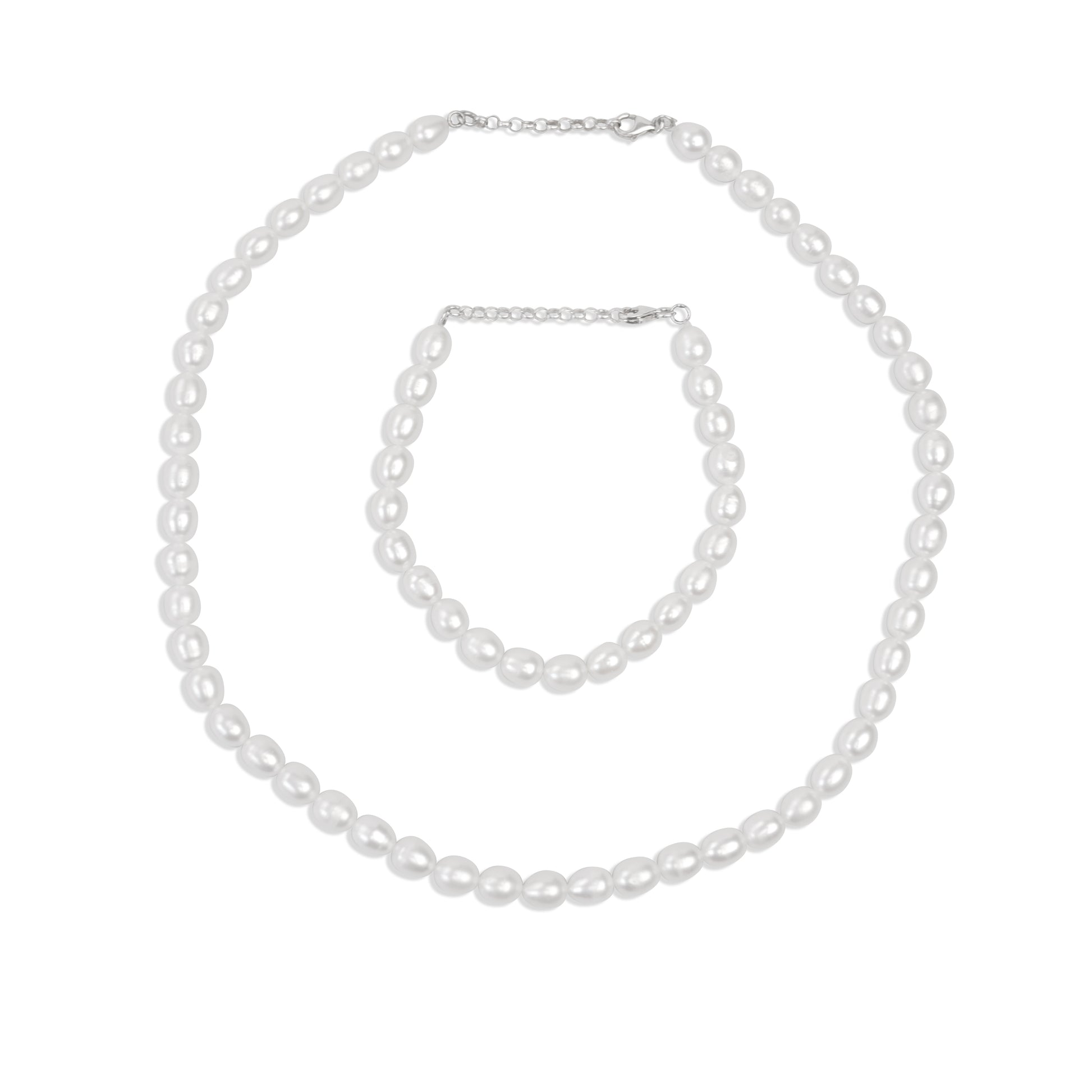 Ensemble De Perle De Culture 9-10 mm Longeur Collier 45 Cm Et 20 Cm Pour Bracelet Fermoire En Argent 925 .