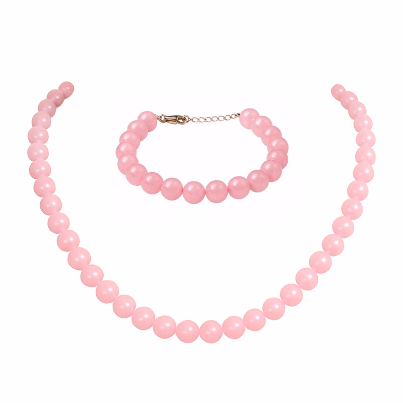 Ensemble Contient un Collier Et Bracelet de Quartz Rose Naturel 8 mm , Longueur Du Collier 45 Cm Et 20 Cm Pour Bracelet, Fermoir En Argent 925 .